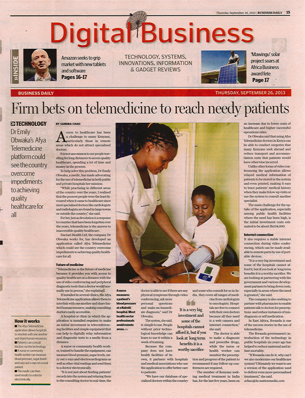 - 12 Feb 2014, Kenya: Dactari Health features in Kenya's largest newspaper
